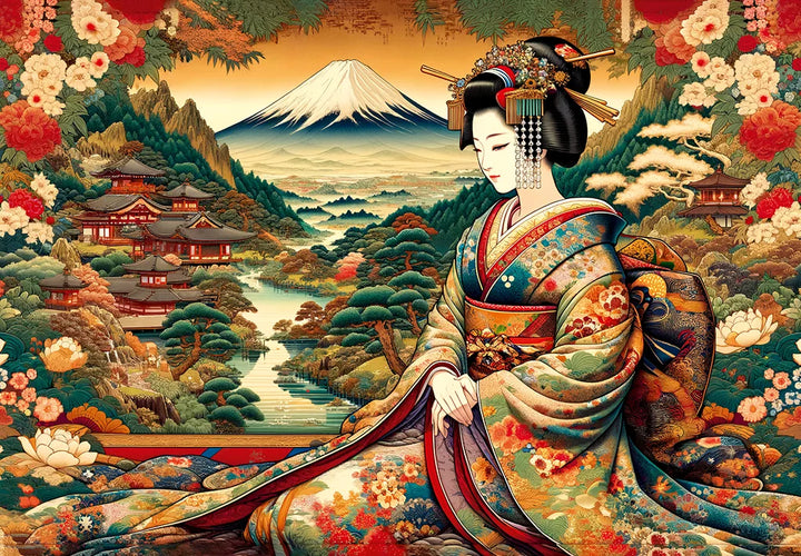 Immerse yourself in the serene beauty of Japan with Echoes of Fuji by Woodstead — a premium wooden jigsaw that captures the timeless grace of Mount Fuji and the elegance of a geisha in vibrant detail. Each piece reflects the artistry of traditional Japanese culture, combining harmony, balance, and beauty.