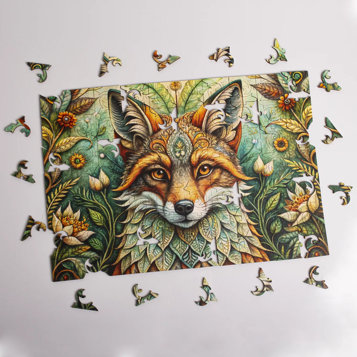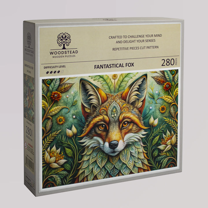 Step into a vibrant woodland world with Fantastical Fox, a handcrafted wooden puzzle that blends artistic flair with puzzling complexity. Featuring a rich, stylized fox illustration in deep autumn tones, this puzzle is as beautiful to behold as it is challenging to assemble.