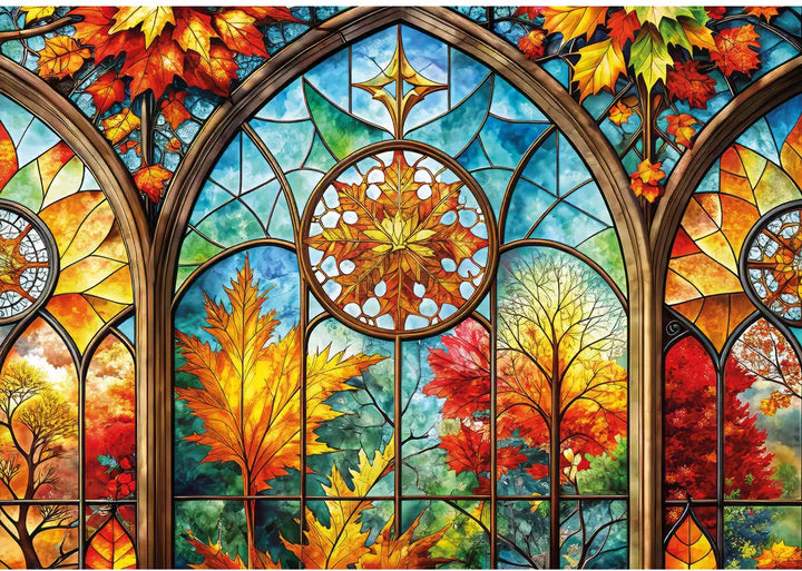 Vivid stained-glass autumn artwork – rich, fade-resistant colors